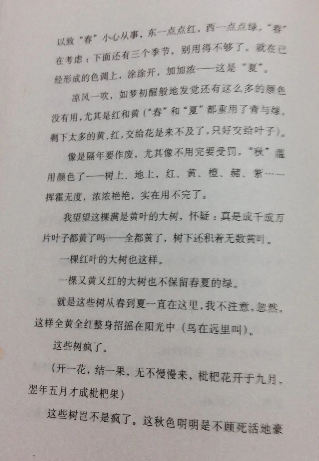 这节心灵书写课在冬至后的第一天开始。于是分两个环节进行,第一个环节我们分别朗诵欣赏了木心先生写的《疯树》,讨论了相关的字词和细节,并且由文字来推断了作者当时的心境和情境以及他想呈现表达的“自我感”——虽然课上我没用这么专业的辞汇来描述,但做的事情是差不多的。